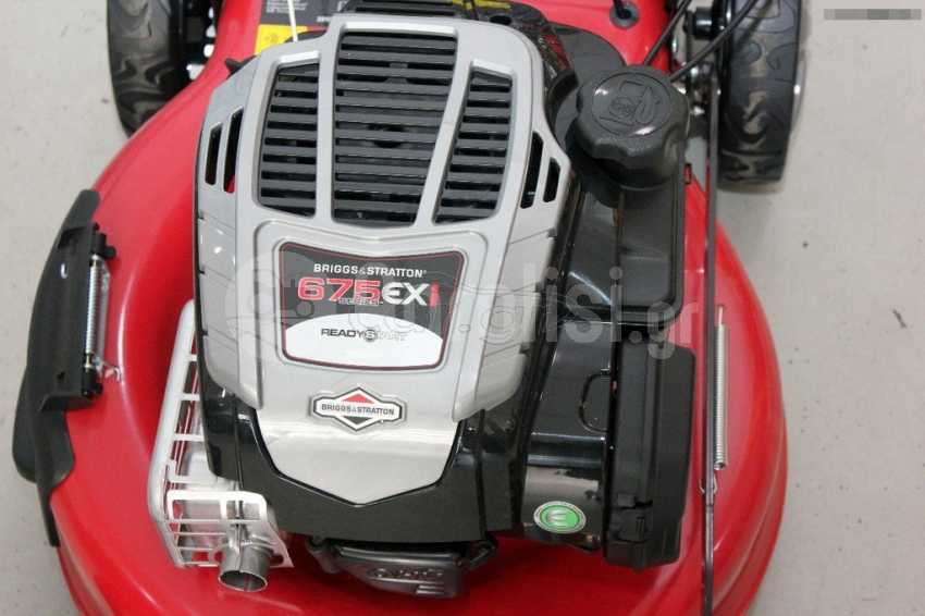 Aυτοκινουμενο χλοοκοπτικο με B&S κινητηρα 6ΗΡ 675ΕΧι 51cm μαχαιρι μετταλικο πλαισιο 8 θεσεις κοπης με μια κινηση πλαινη εκτοξευση με συστημα MULCHING καδος 60lt πλαστικος τροχοι 8 εμπρος 10 πισω