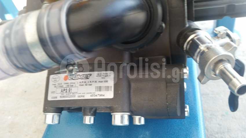ΝΙΚΟΛΑΟΣ ΤΣΙΓΚΡΗΣ αναρτωμενο ψεκαστικο 500 λιτρων με ενισχυμενο σκελετο γαλβανισμενο εν θερμω ή βαμμενο και αντλια υψηλης πιεσεως ΙΤΑΛΙΚΗ COMET APS 51. Χειριστηριο δυο εξοδων ΙΤΑΛΙΚΟ. Προαιρετικα ανεμη για λαστιχο,λαστιχο ψεκασμου και αξονας κινησης.