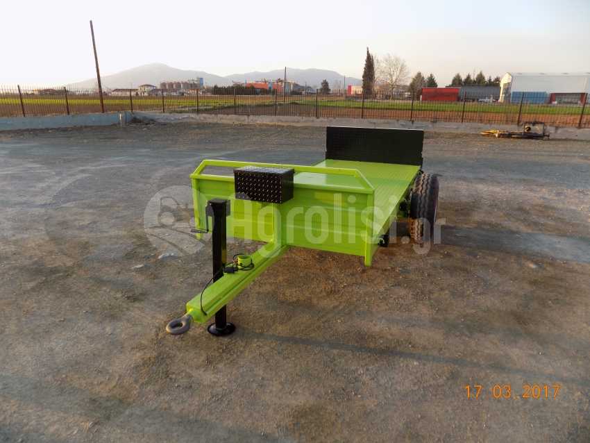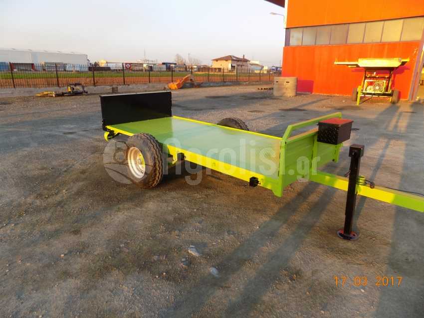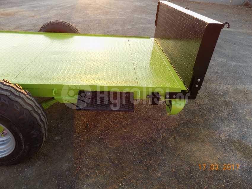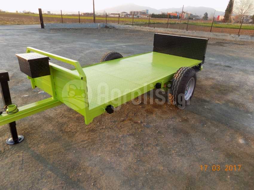 Καροτσακι μεταφορας προιοντων διτροχο , για τρια τελαρα ( bins ) με την πλατη ορθια και για 29 κλουβες ( δυο + μια μαχαιρι ) με την πλατη κατευασμενη . Εχει εξατρυπη ζαντα - μουαγιε με δεκατετραλινα ελαστικα και ενισχυμενο αξονα καταλληλο για φορτιο εως 3000 κιλα , φωτα , ποδαρικο , ντουλαπι για τους ιμαντες , σκαλοπατι .