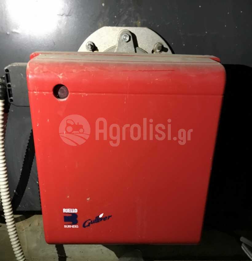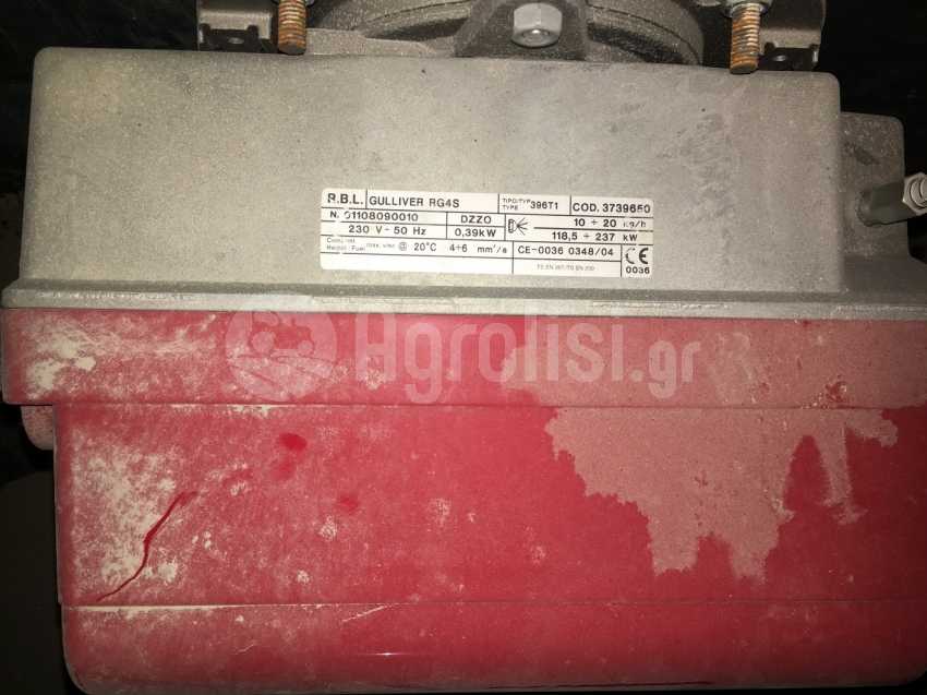 Πωλείται λέβητας πετρελαίου Hellas Therm ισχύος 174 kW (150.000 kcal/h) με καυστήρα Riello (Μοντέλο Gulliver RG4S) και κυκλοφορητή Wilo (Μοντέλο TOP S40/7) με ελάχιστες ώρες λειτουργίας και σε άριστη κατάσταση. To σύστημα θέρμανσης αγοράστηκε καινούργιο το 2010 για χρήση σε οικοδομή όπου πλέον υπάρχει αέριο. Θερμοκρασία λειτουργίας: 70-90°C Μέγιστη πίεση λειτουργίας: 3 Bar